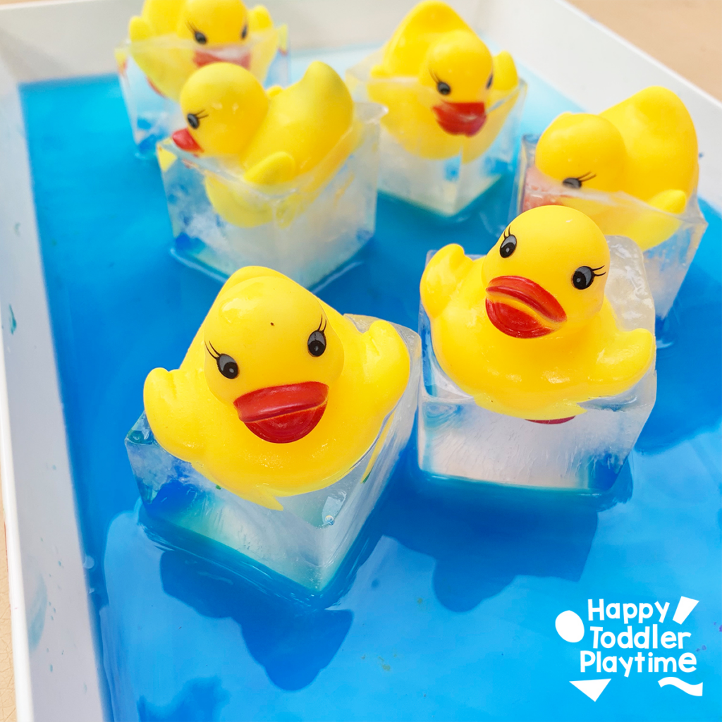 Drop some tiny rubber ducks into an ice cube tray, freeze them, and let the kids rescue their duck friends with warm water and tools! It’s the perfect mix of sensory fun, fine motor work, and imaginative play.