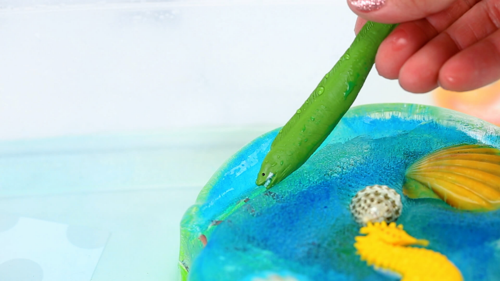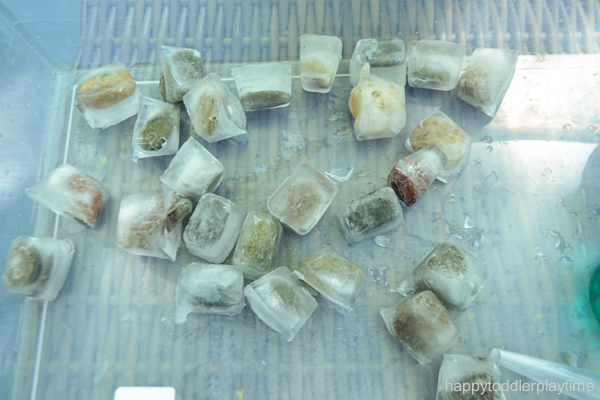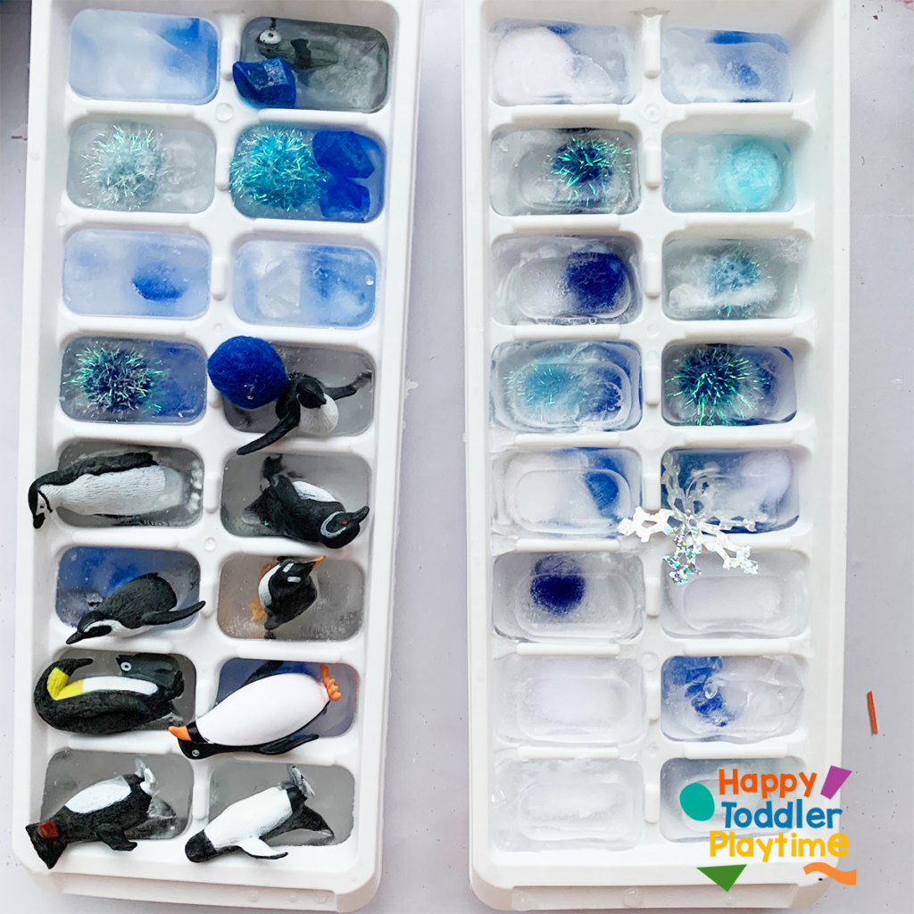 Similar to the ocean bin, add frozen elements to enhance the sensory experience.