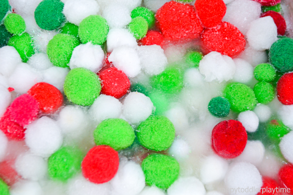 Combine frozen penguin toys and pom poms in a bin for a themed sensory adventure.