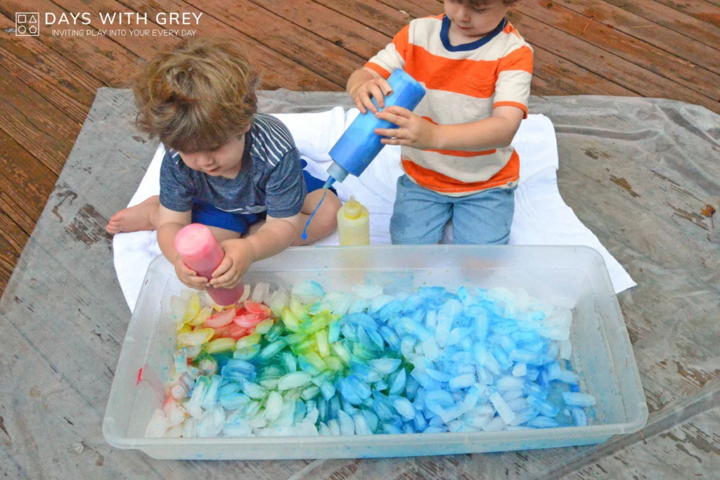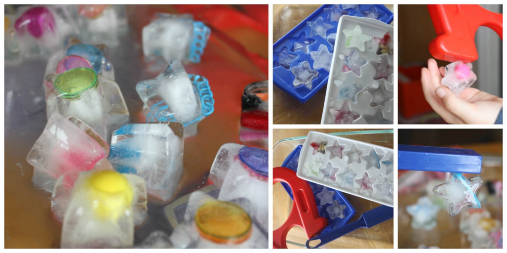 Hide small items in ice cubes and have kids find and melt them, promoting observation and patience.
