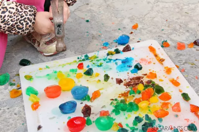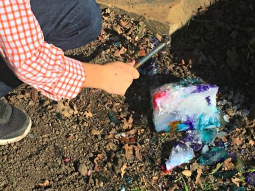 Let kids smash ice cubes with safe tools, releasing energy and exploring cause and effect.