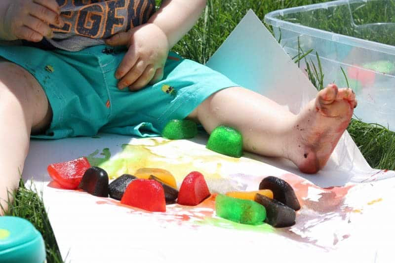 Freeze Jello into cubes and use them for painting. As they melt, they release vibrant colors and delightful scents.