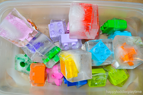 Encapsulate Lego pieces in ice and let kids melt them to build, combining construction and sensory play.