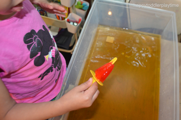 Freeze colored water in boat molds and let them sail in a tub, combining art and science.