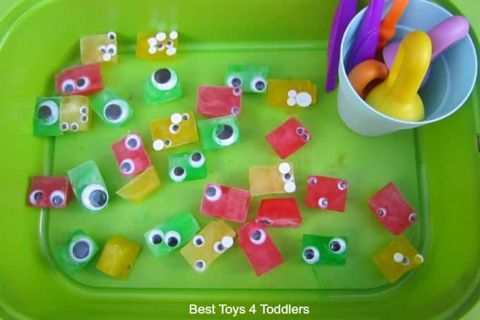 Create ice cubes with googly eyes for a fun and silly sensory activity.