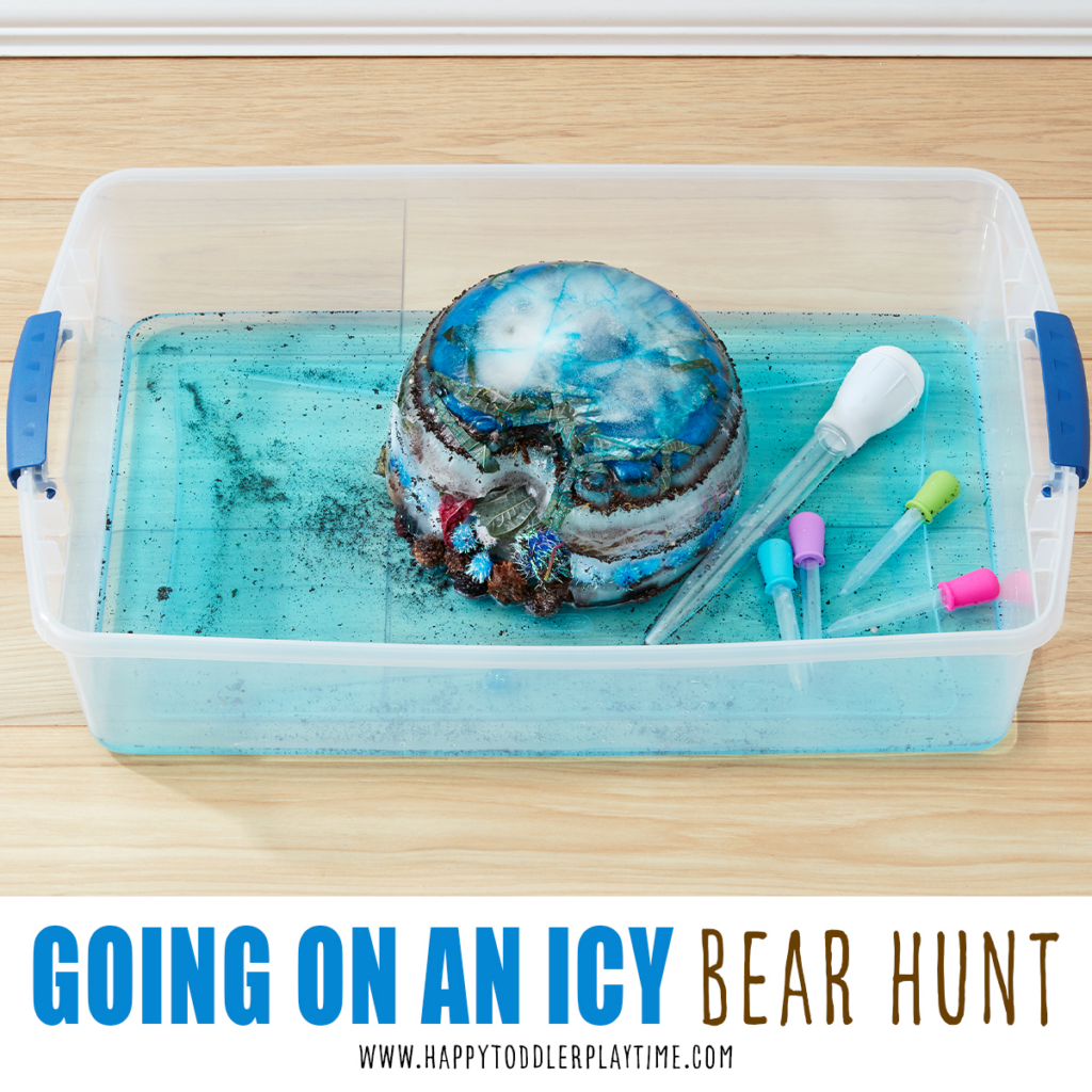Create a frozen landscape and hide toy bears for kids to find, enhancing storytelling and sensory skills.