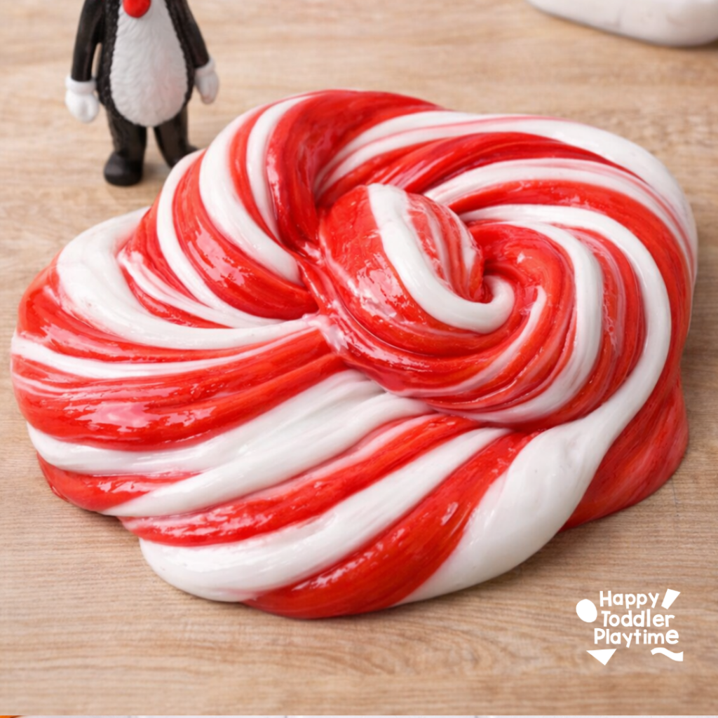 - Stretch the red and white slime side by side, then twist or fold them together to make a striped swirl.