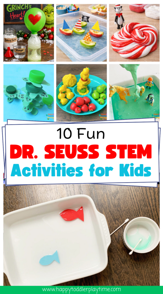 From creating the Cat in the Hat’s hat using oil and water or crafting your own green eggs using baking soda or helping the Grinch grow his heart 3 sizes with vinegar!