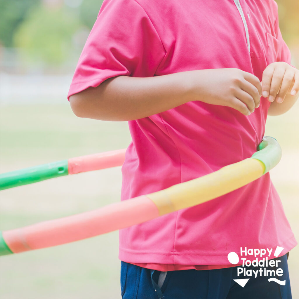 Explain the rules: the goal is to keep the hula hoop spinning around their waists while moving from the starting line to the finish line. If the hoop falls, they need to pick it up and start spinning it again before continuing. You can add extra excitement by creating a relay race, where each child tags the next teammate after completing their leg of the race.