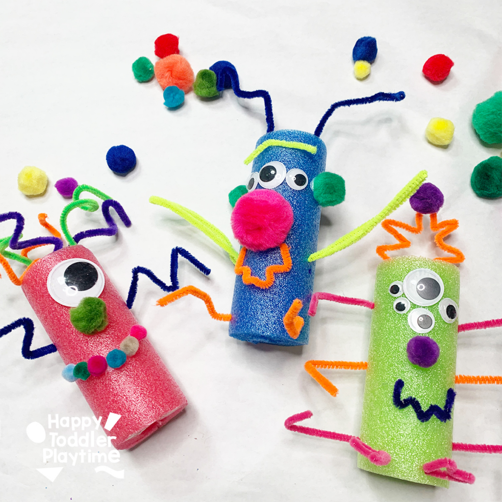 Cut pool noodles into sections. Let kids decorate them with eyes, pipe cleaners, and pom-poms to create unique monsters.