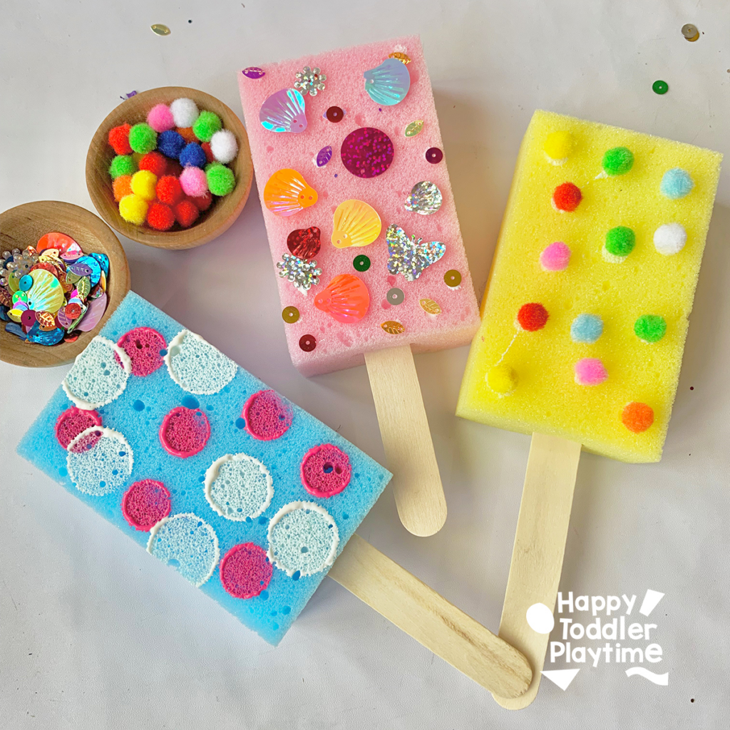 Cut sponges into popsicle shapes, insert craft sticks, and let kids decorate with paint or markers.