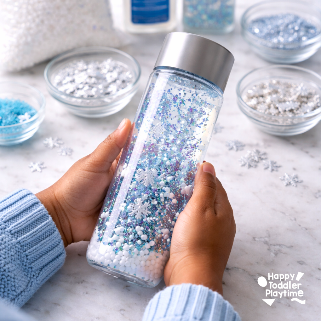 Winter sensory bottles are one of those activities that quietly become part of your routine. They don’t demand attention, but they invite it—and on long winter days, that’s exactly what you want.