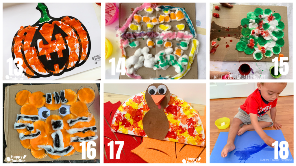 Make a fluffy turkey body with cotton balls and paint them in vibrant fall shades.