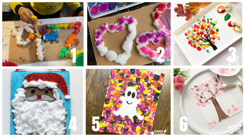 Here are some fun ways to use cotton balls in seasonal and holiday-themed crafts. Each one is quick to set up, engaging, and guaranteed to make kids proud of their creations.