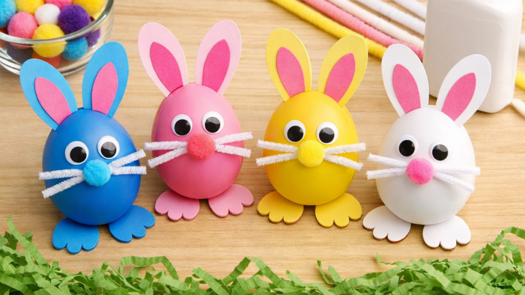 Look for crafts that are quick to prep and repeatable, like bunny masks, egg decorating with stickers, paper chick crafts, or cotton ball sheep. These work well for classrooms, playdates, and Easter parties.
