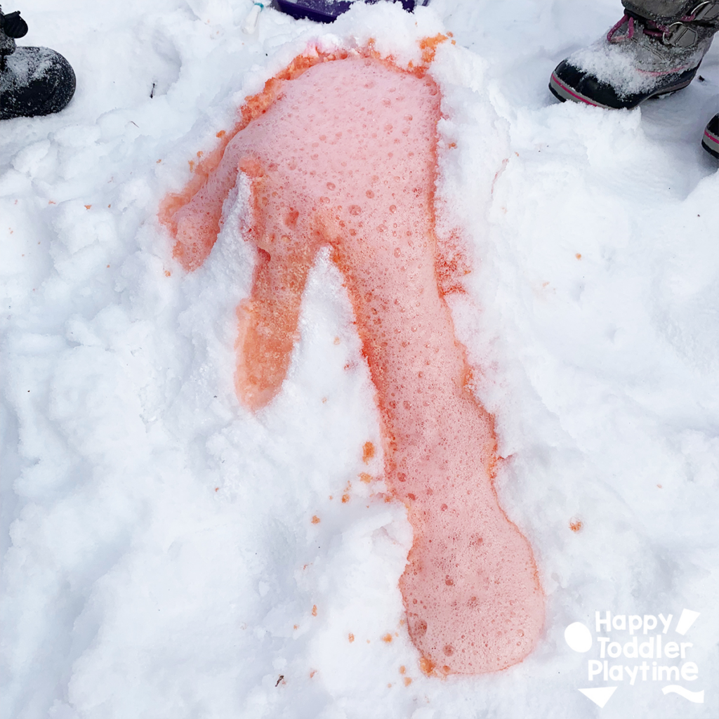 Here is another run snow activity that you can do either indoors or outdoors after a fresh snow fall! It is easy to make and great for toddlers, preschoolers and kindergartners!
