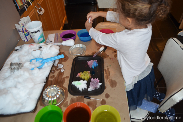 This is a super fun and easy winter activity that had my three year old entertained for almost two hours!? After the 4th doing it I had to tell her that this would be the last time!