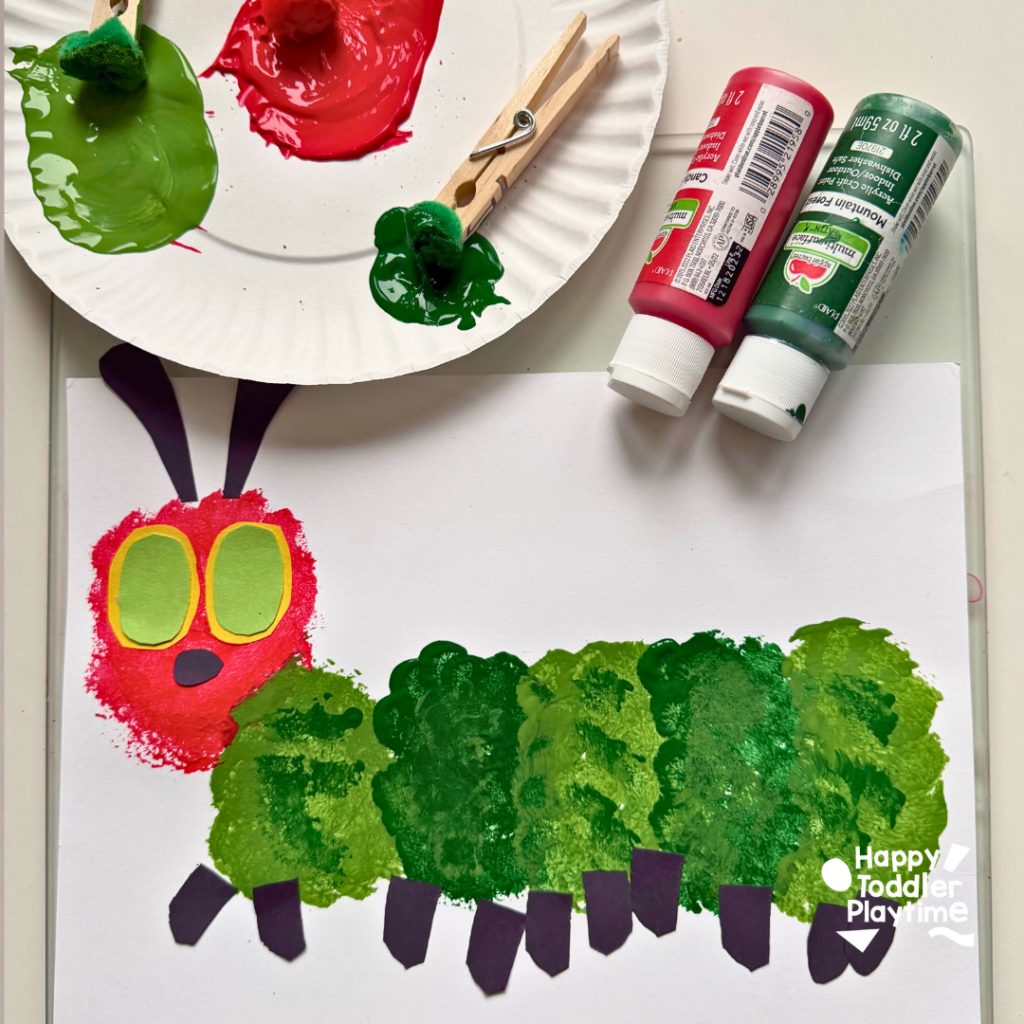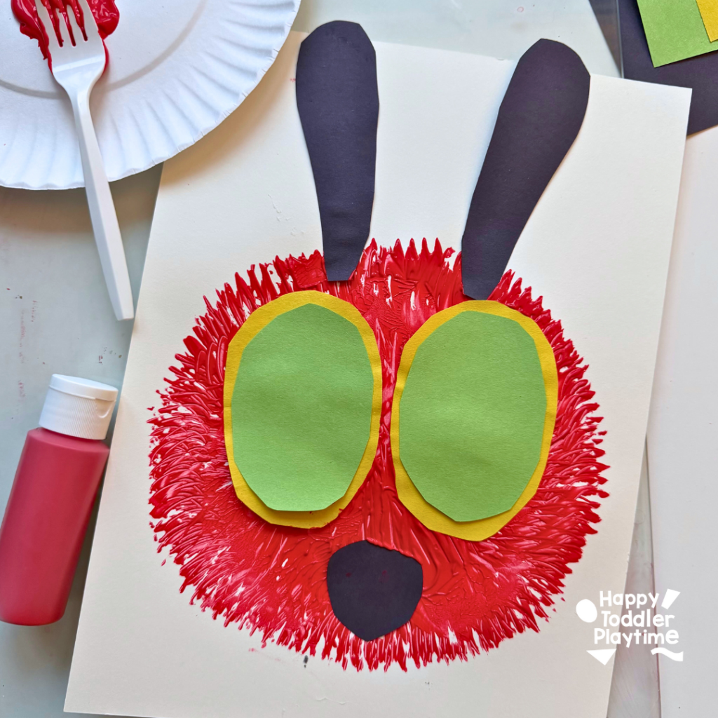 This is a simple, textured painting activity that’s perfect for young kids who love the story and enjoy experimenting with paint. Using a fork creates the caterpillar’s fuzzy, bumpy body — and the process is just as fun as the finished art.
