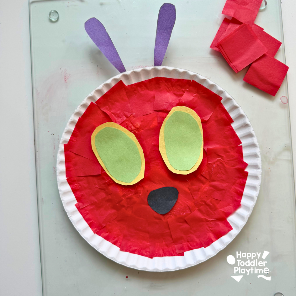 This simple paper plate craft is a fun way for kids to make their own version of the Very Hungry Caterpillar. It’s easy to set up and great for little hands who love painting and gluing.