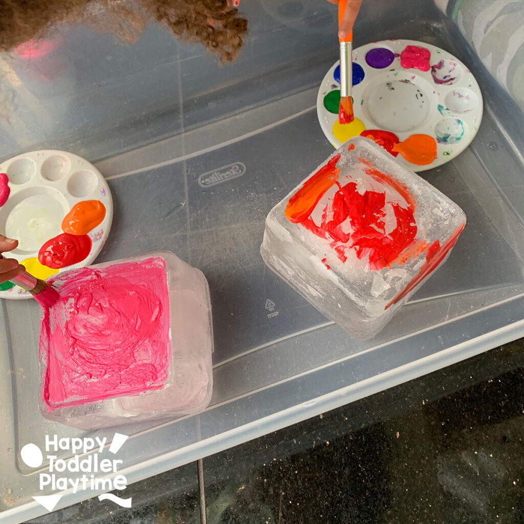 Painting Ice is a super easy art activity for kids. A great activity for anytime of the year: indoor during the winter outdoor on a hot day.