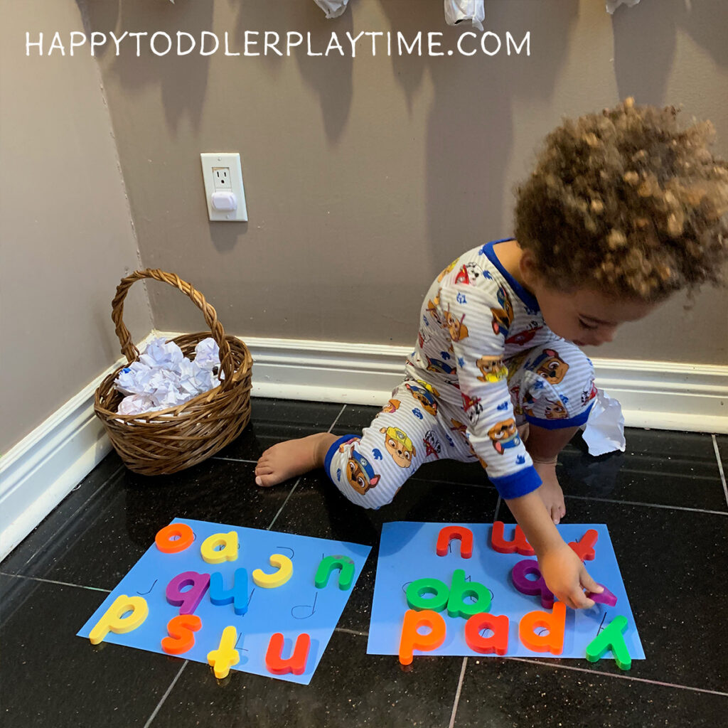Snowball Letter Unwrap is a fun way to practice letter recognition! This easy early literacy activity is great for toddlers and preschoolers.
