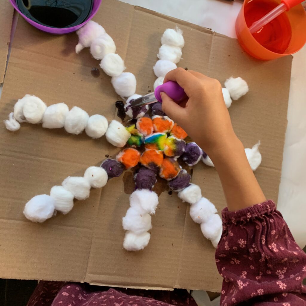 Cotton ball snowflake is a fun and easy fine motor art activity for toddlers and preschoolers. Create a colourful snowflake this winter!
