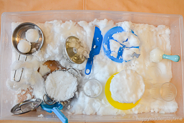 Dive into a fun winter project that’s perfect for indoor winter days – Fake Snow Sensory Bin