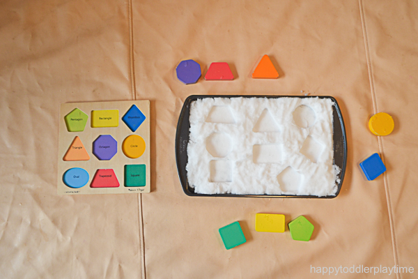 Need a fun way to refresh your shapes puzzle this winter? Trying putting it in snow! Check out this super fun and easy puzzle matching activity for toddlers!