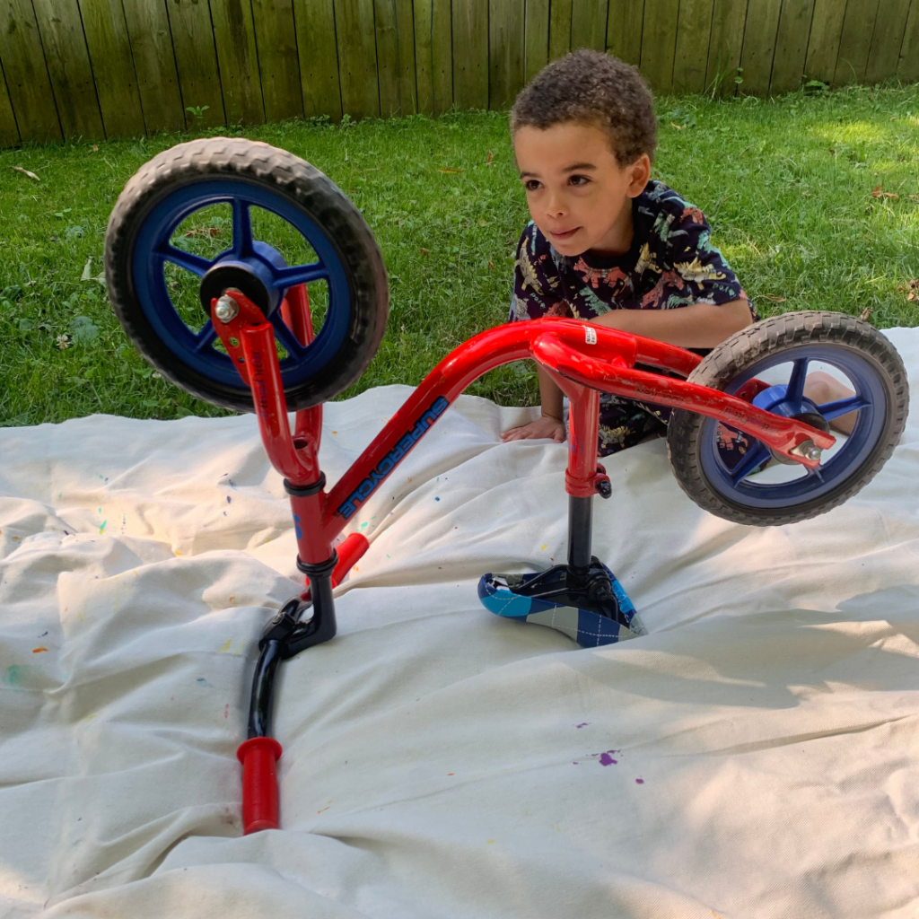 - Kids get to use their bikes to paint (yes, you’re the coolest grown-up now).