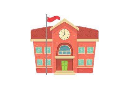 - Attach the school, sign and flag to the top back fo the shoebox wing glue.
