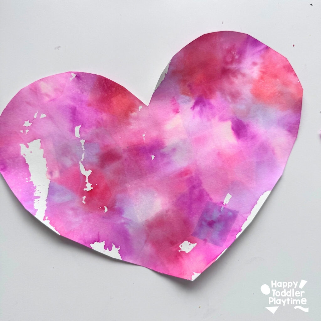 - Set your heart aside to fully dry (this may take an hour or so). Once dry, peel off the tissue paper to reveal a beautiful, watercolor-style heart!