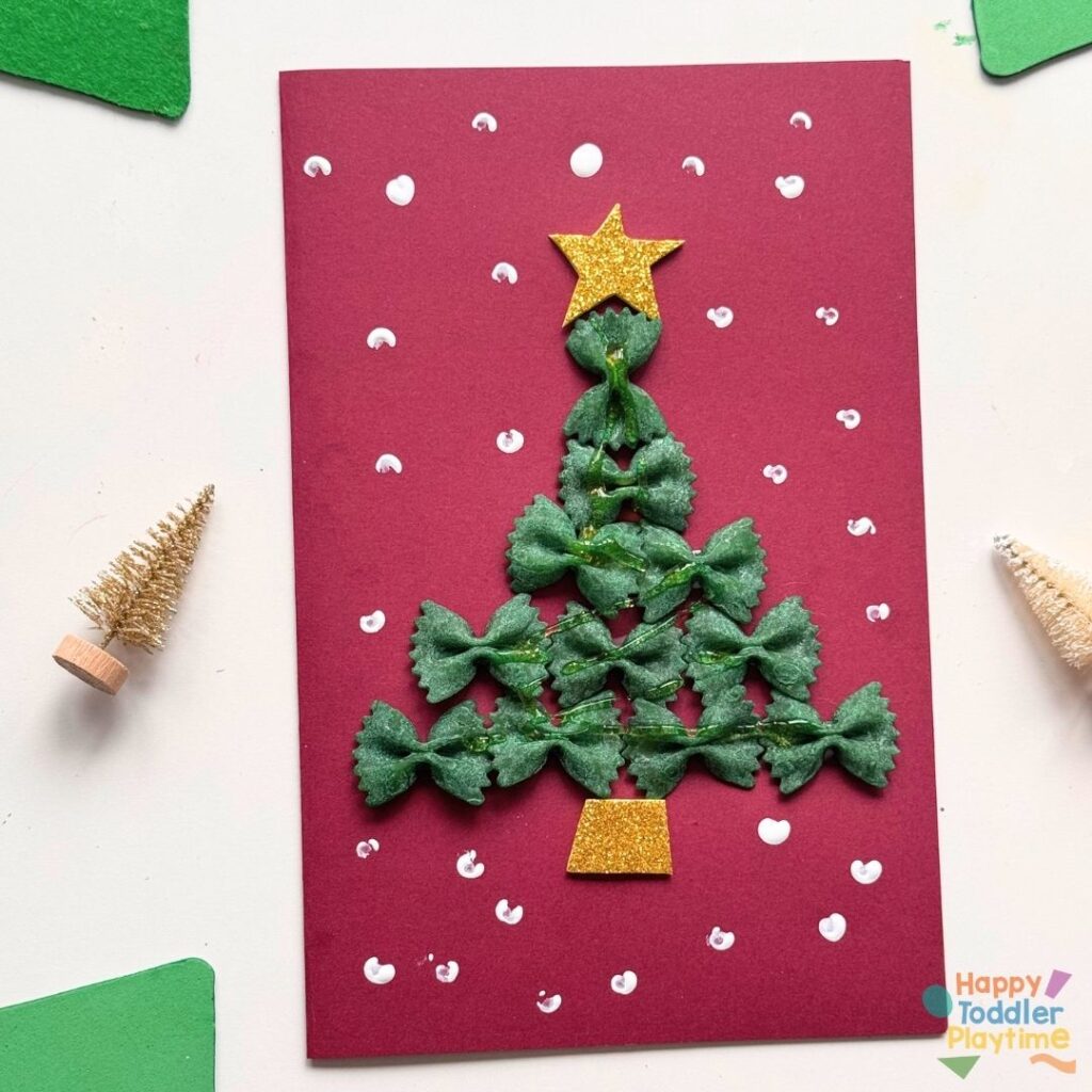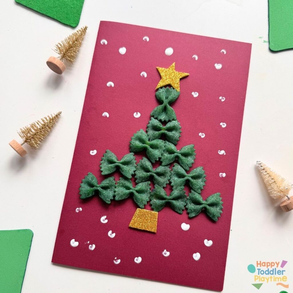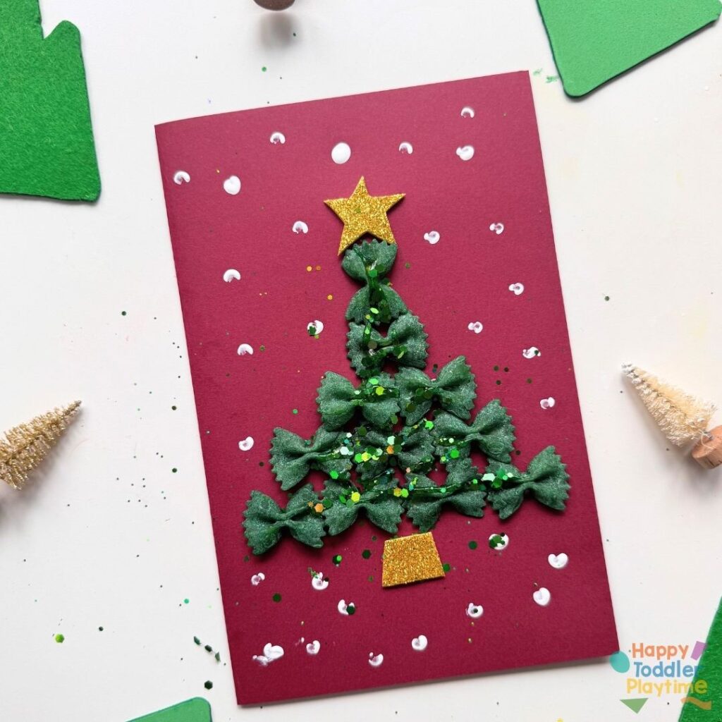 This craft is simple, festive, and packed with creativity. Kids will enjoy the process of dyeing the pasta, arranging it into a tree shape, and decorating it with glitter and sparkles. Plus, the final card is a one-of-a-kind keepsake that’s sure to bring a smile to anyone who receives it.
