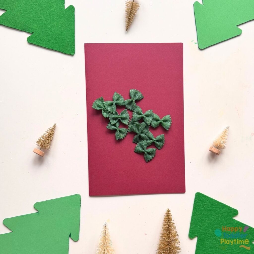 Handmade holiday cards are such a fun way to spread festive cheer, and this Bow Tie Pasta Tree Christmas Card craft takes it to the next level with its creative use of dyed pasta! My kids enjoyed how ordinary pasta could be transformed into colorful “tree branches,” and they loved gluing and decorating their unique trees. It’s a hands-on activity that’s not only fun but also teaches them about creating something special for loved ones.