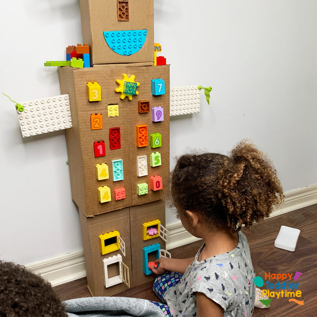 Looking for a fun craft that combines building, creativity, and recycled materials? This LEGO cardboard robot craft is perfect!