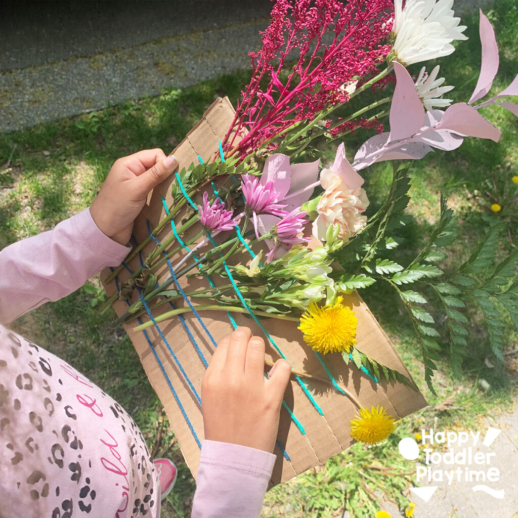 Take weaving outdoors with this nature-inspired cardboard loom. Kids can gather leaves, flowers, and twigs for a beautiful, earthy weaving project.