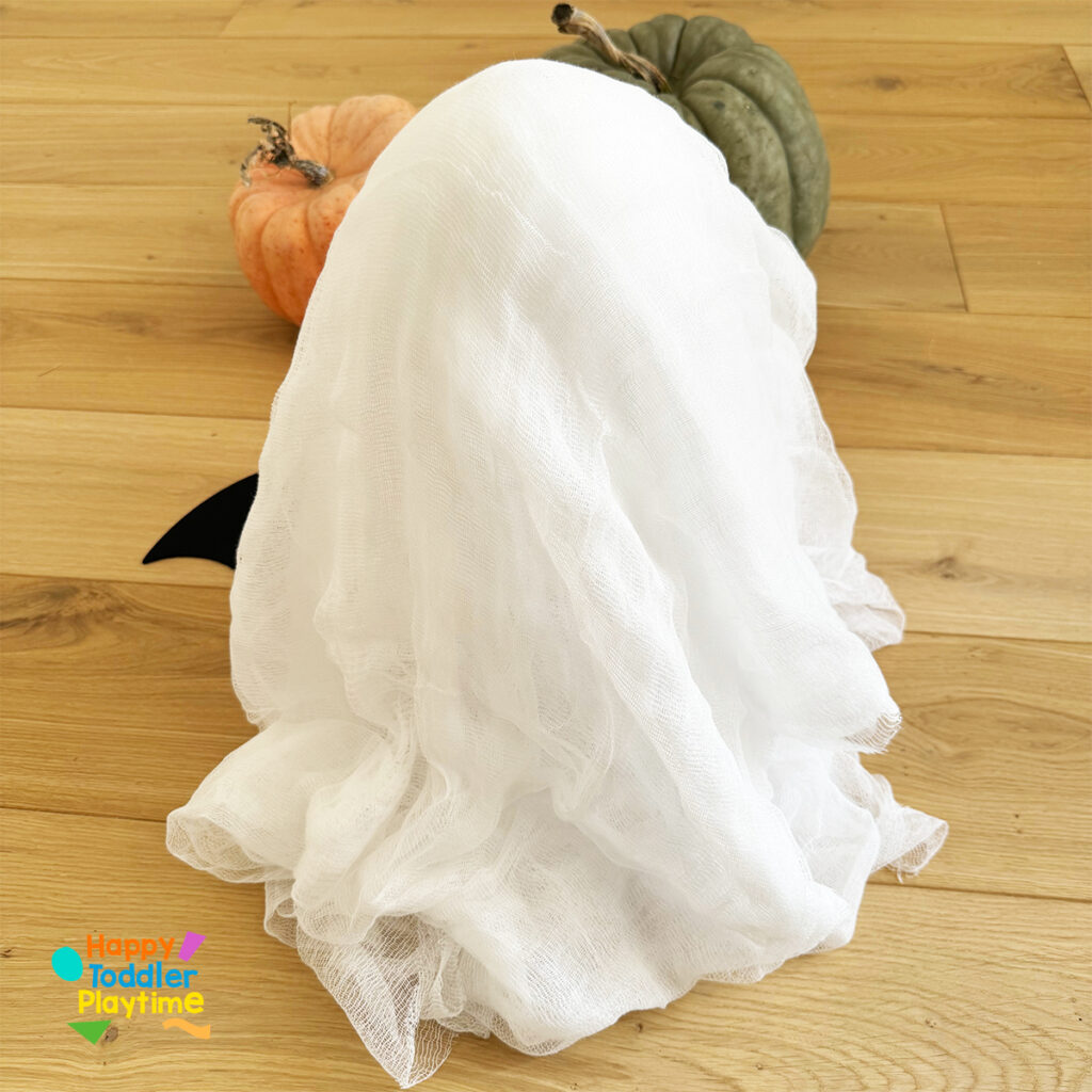 For a stiffer ghost, dip the cheesecloth in liquid starch or fabric stiffener before draping it over the base. Let it dry completely—this could take several hours or overnight. - Create the face: