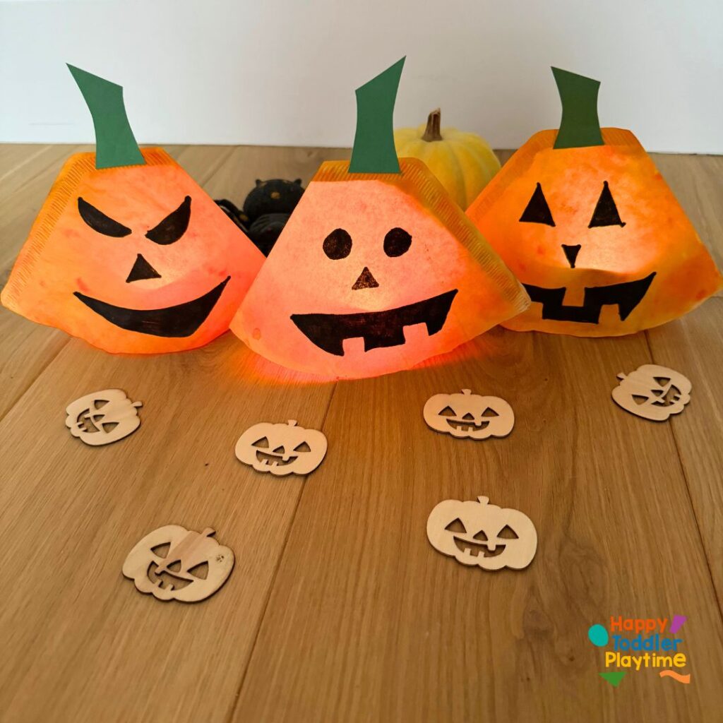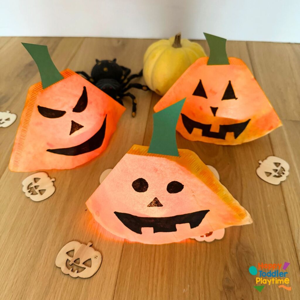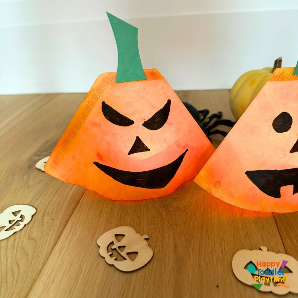 These Coffee Filter Pumpkin Lanterns are sure to bring a festive glow to your Halloween celebration, and kids will be thrilled with the finished result!