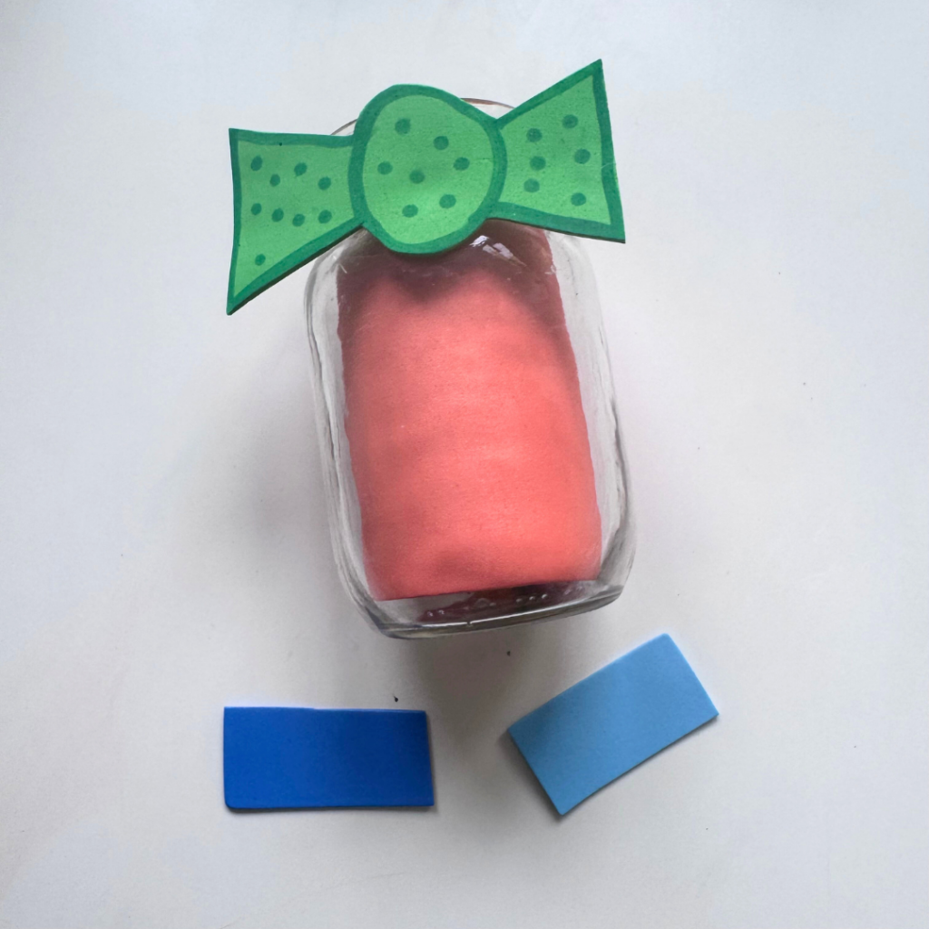 - Decorate the Jar: Start with a clean mason jar. Cut out a bow tie from a foam sheet. Outline it with a marker. Glue the bowtie to the top of the mason jar.