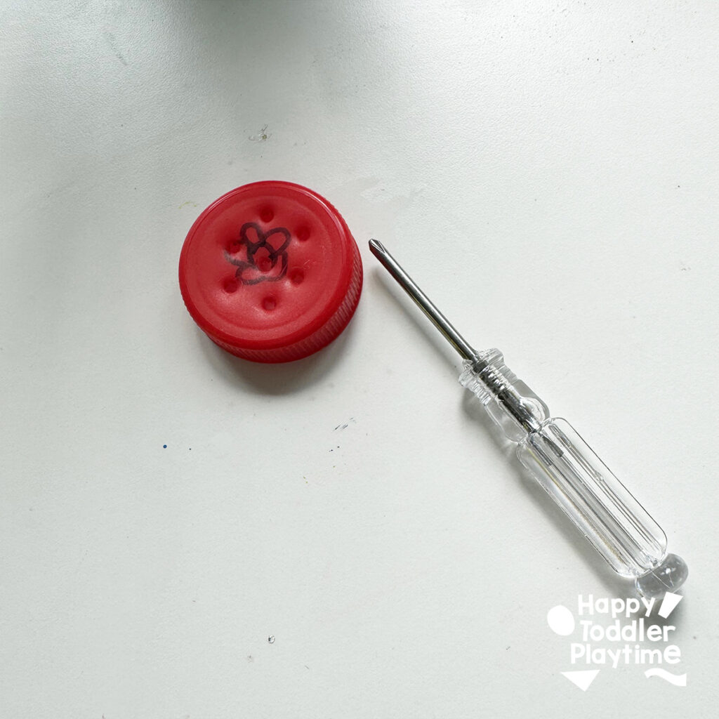 - Prepare the Spout: Using a small screwdriver, carefully poke several holes into the cap of the milk jug. These holes will allow the water to sprinkle out when you pour, just like a real watering can. Make sure the holes are evenly spaced for a nice, even flow.