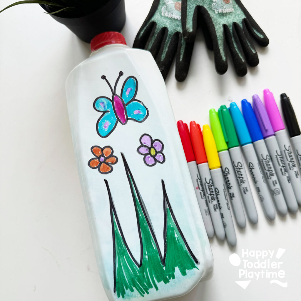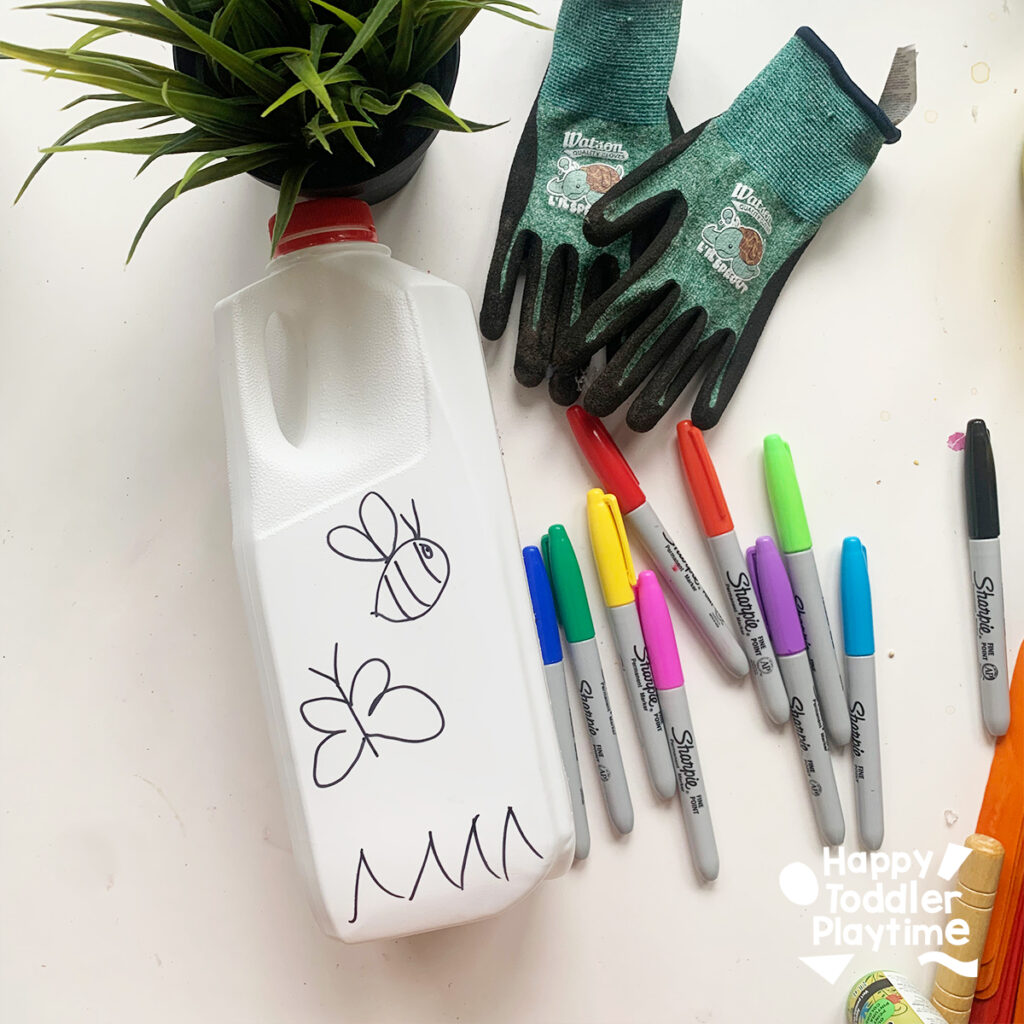 - Decorate the Jug: Give your kids the Sharpies and let them go wild decorating the outside of the jug. They can draw flowers, patterns, or anything their imagination inspires. This step is all about letting their creativity shine.