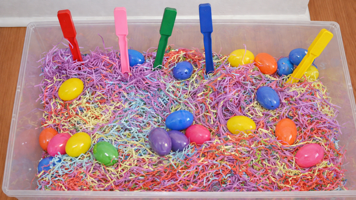 - Give each child a pile of plastic Easter eggs.