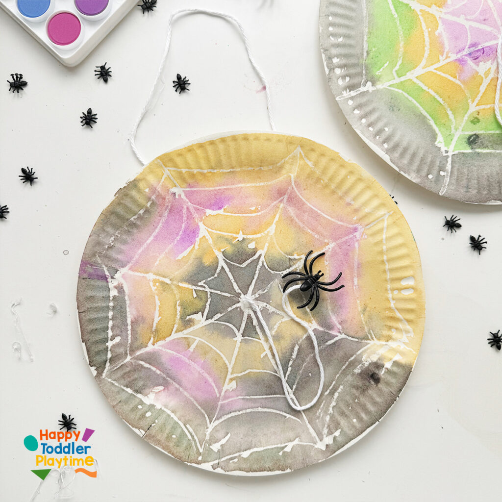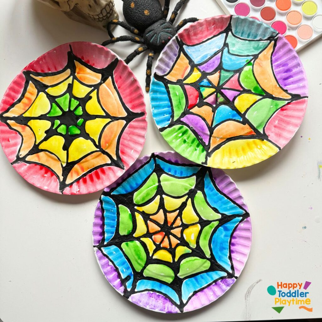 This spider web suncatcher craft is a fun craft for kids for Halloween. Make a colourful spider web this Halloween with your kids!