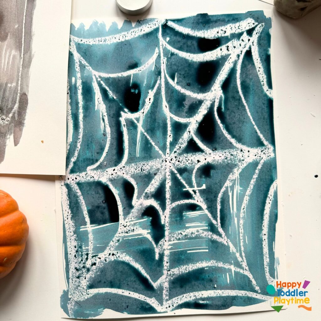 Let your little one create a spider web using their fingers in this fun and easy Halloween finger painting craft for kids.