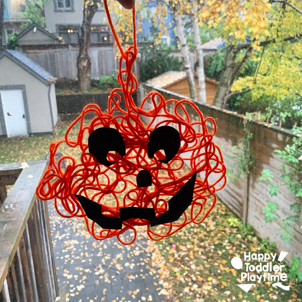 Create this unique craft with your kids this Halloween: a yarn lacing pumpkin! It makes a great addition to any Halloween decor this season!