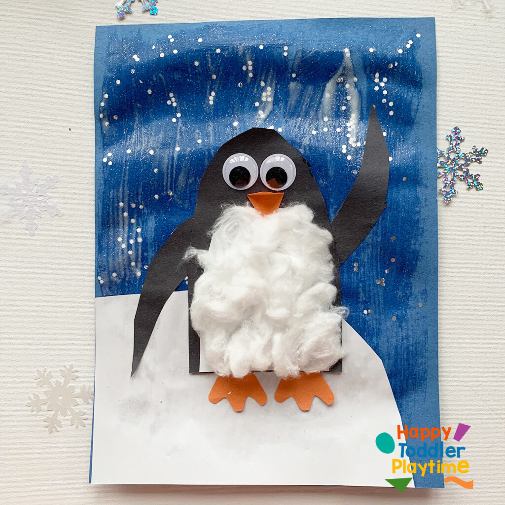 This adorable penguin craft adds a sparkly winter touch with glitter and glue. A fun way to celebrate winter and practice fine motor skills.