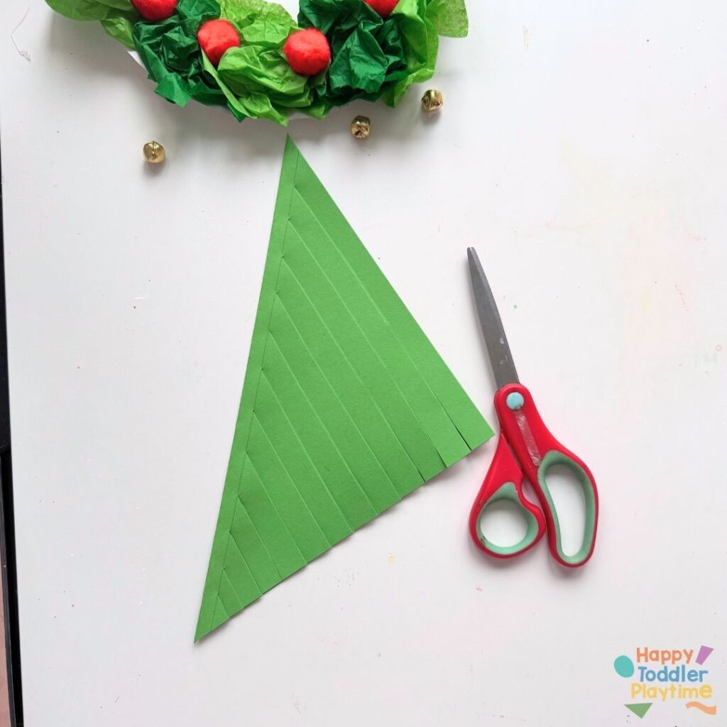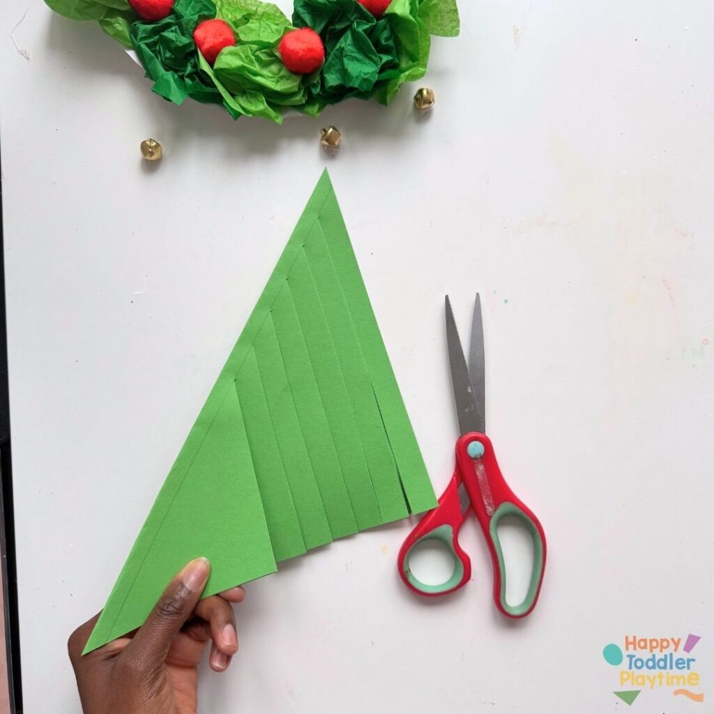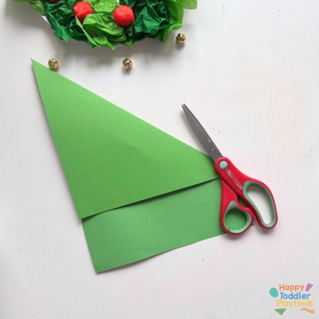 Fold a piece of green construction paper diagonally to create a square, then cut off the excess paper.