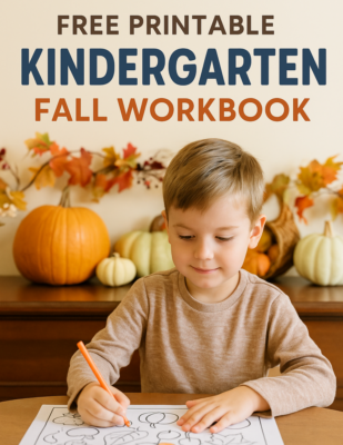 If you’ve got a kindergartner at home, you already know how much they love hands-on activities that feel more like play than “work.” That’s exactly why I created this Free Printable Kindergarten Fall Workbook — a fun, low-prep way for your child to practice letters, numbers, and even writing skills, all with a cozy fall theme. With over 30 pages of activities (think writing practice, fall coloring pages, counting, tracing, and patterns), this workbook is the perfect mix of learning and fun to keep your 5- or 6-year-old busy and engaged this season.