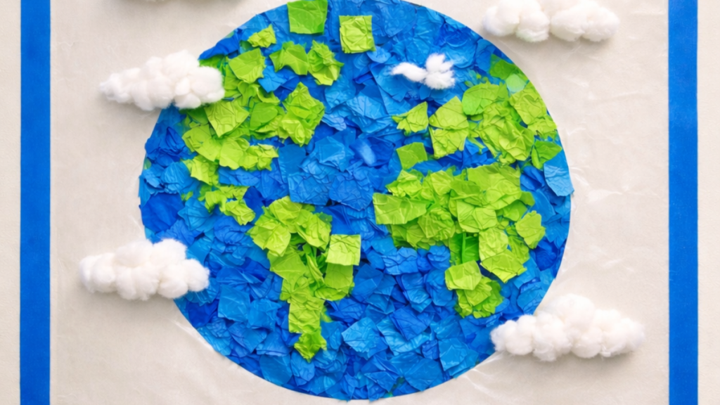 Once they are done the earth, you can bring out the cotton balls for the clouds around the Earth.