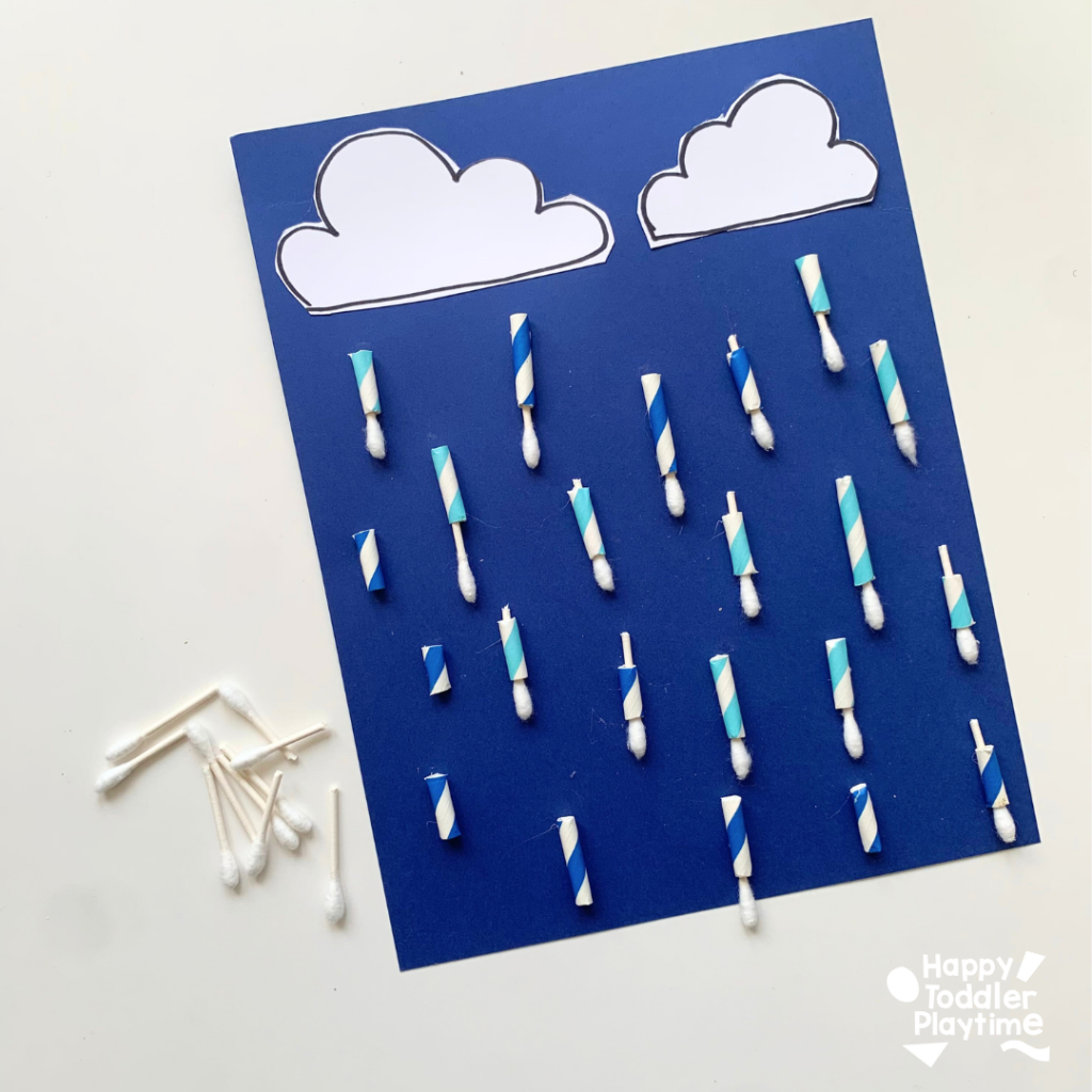 Cut out clouds, glue q-tips underneath to create raindrops.