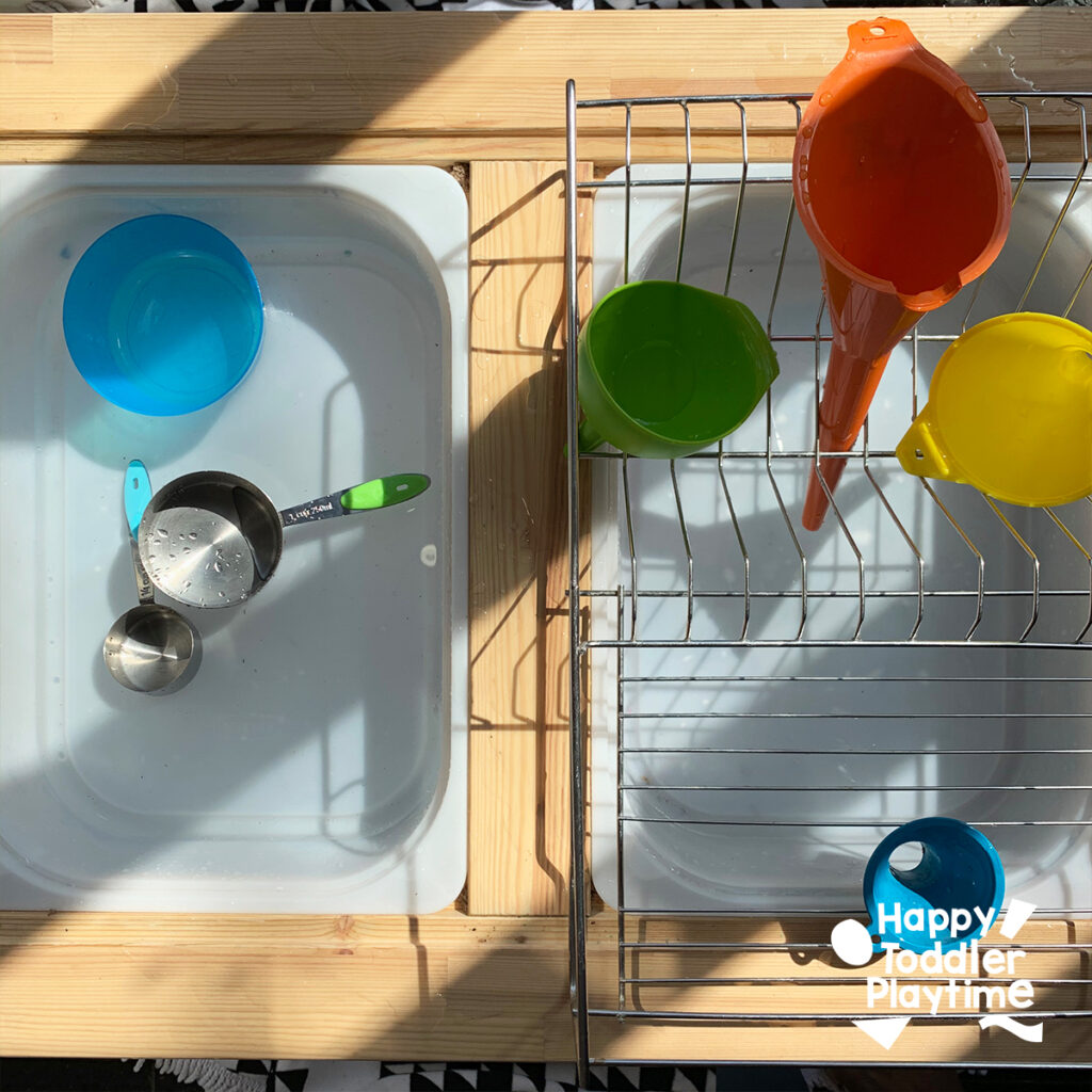 If you don’t have a water table, a large, shallow plastic bin works just as well.
